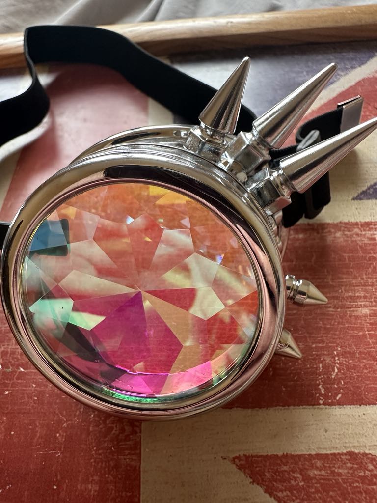 Silver Spiked Steampunk Goggles β Kaleidoscope Lenses